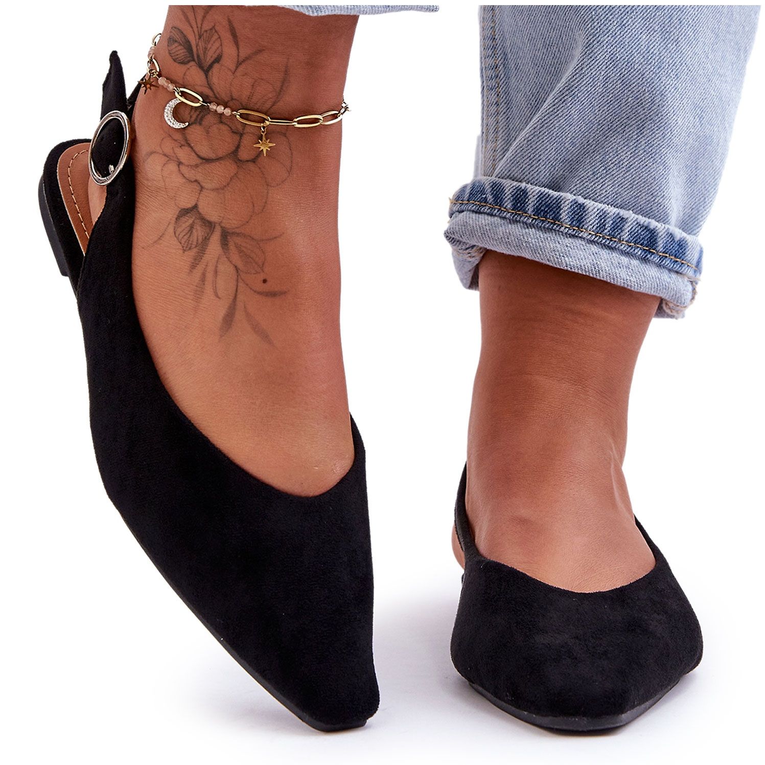 We present unique women's PS1 ballerinas in classic black, which will perfectly complement any spring-summer styling. These elegant shoes are distinguished by an open heel and an elongated toe, which gives them an original character. Made of high-quality eco-suede, they are both stylish and environmentally friendly.