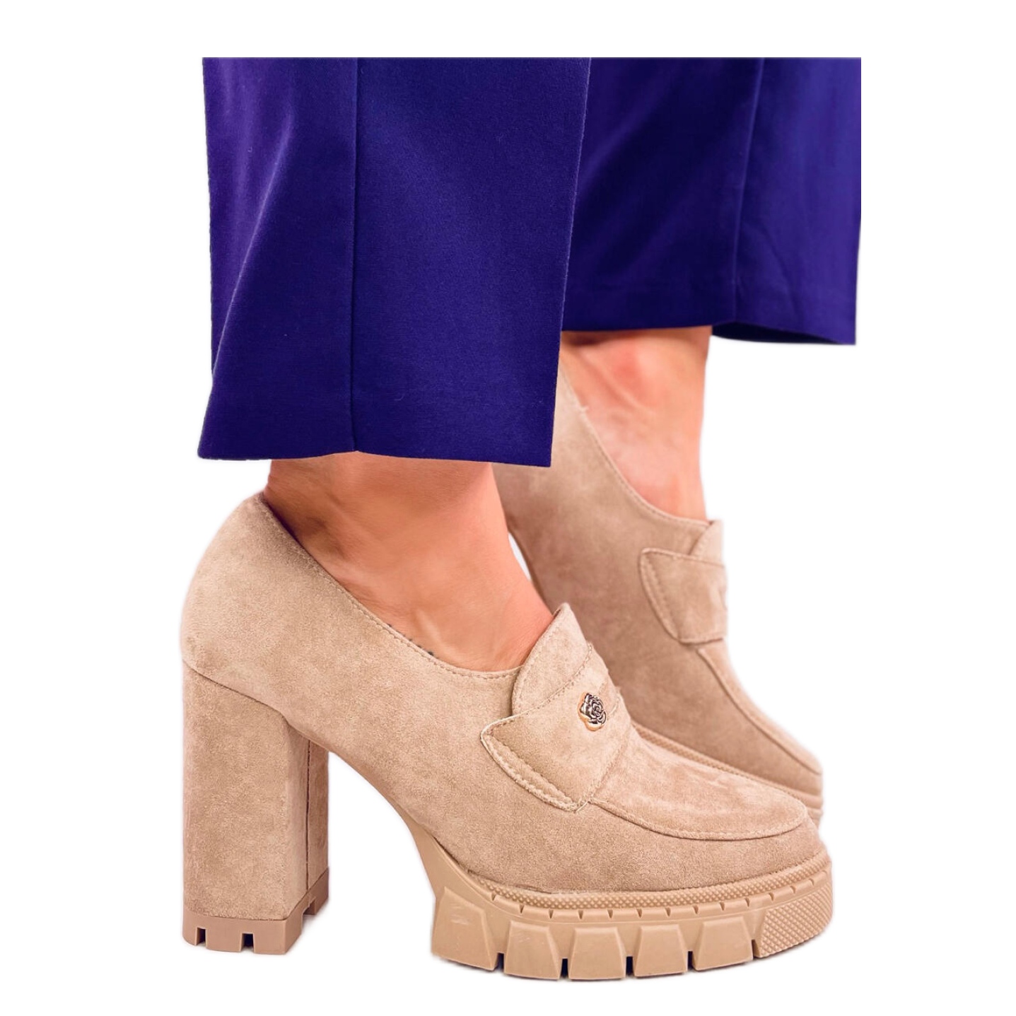 Discover the unusual charm of high-heeled moccasins and beige platform, which will certainly become your fashion must-have! These suede women's loafers combine elegance and comfort, thanks to which they are perfect for both every day and for more special occasions.