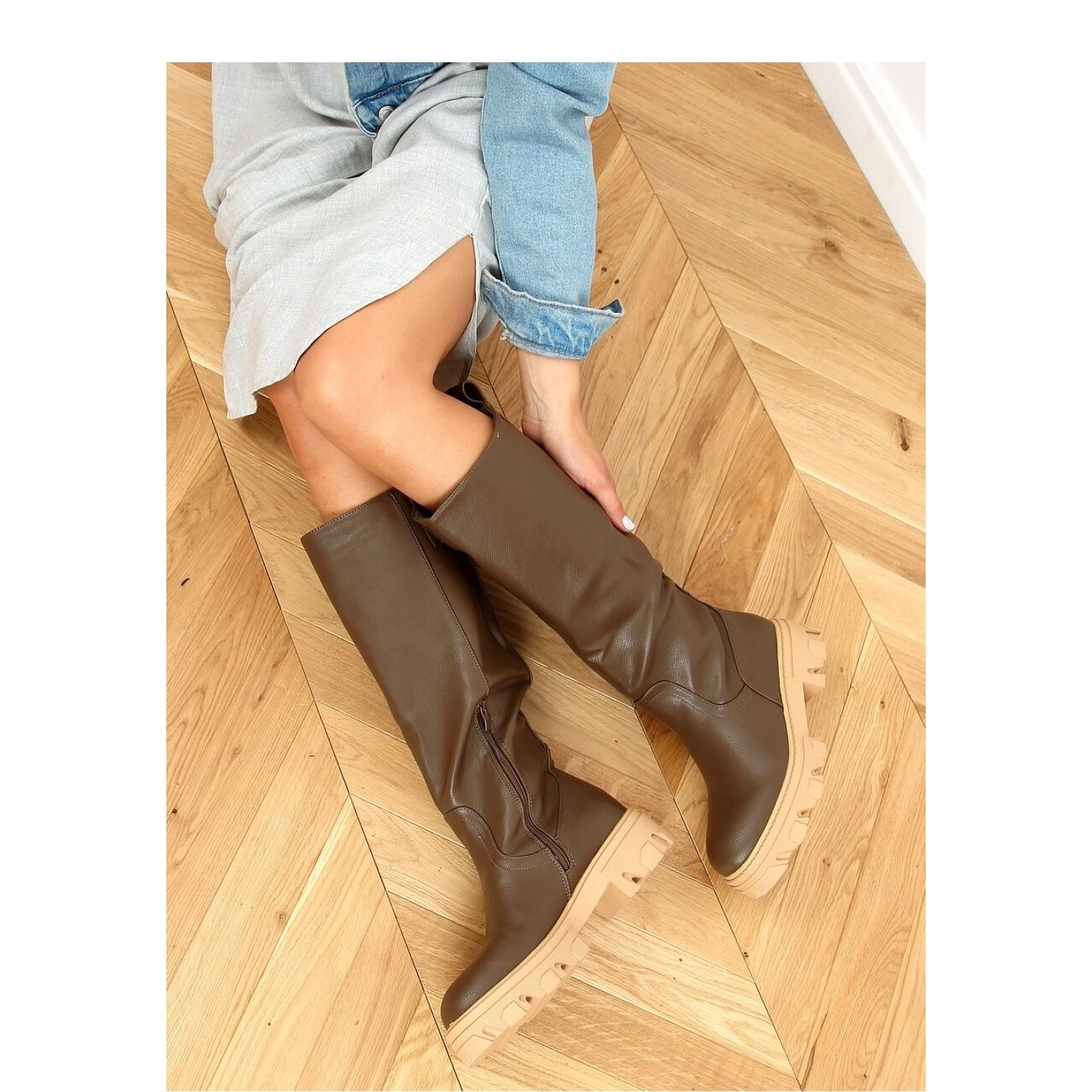 Inello Khaki QT21P Army Green boots with a thick sole - Inello