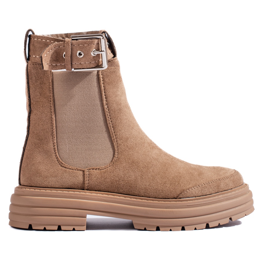 Details: Khaki suede ankle boots with Shelovet buckle beige