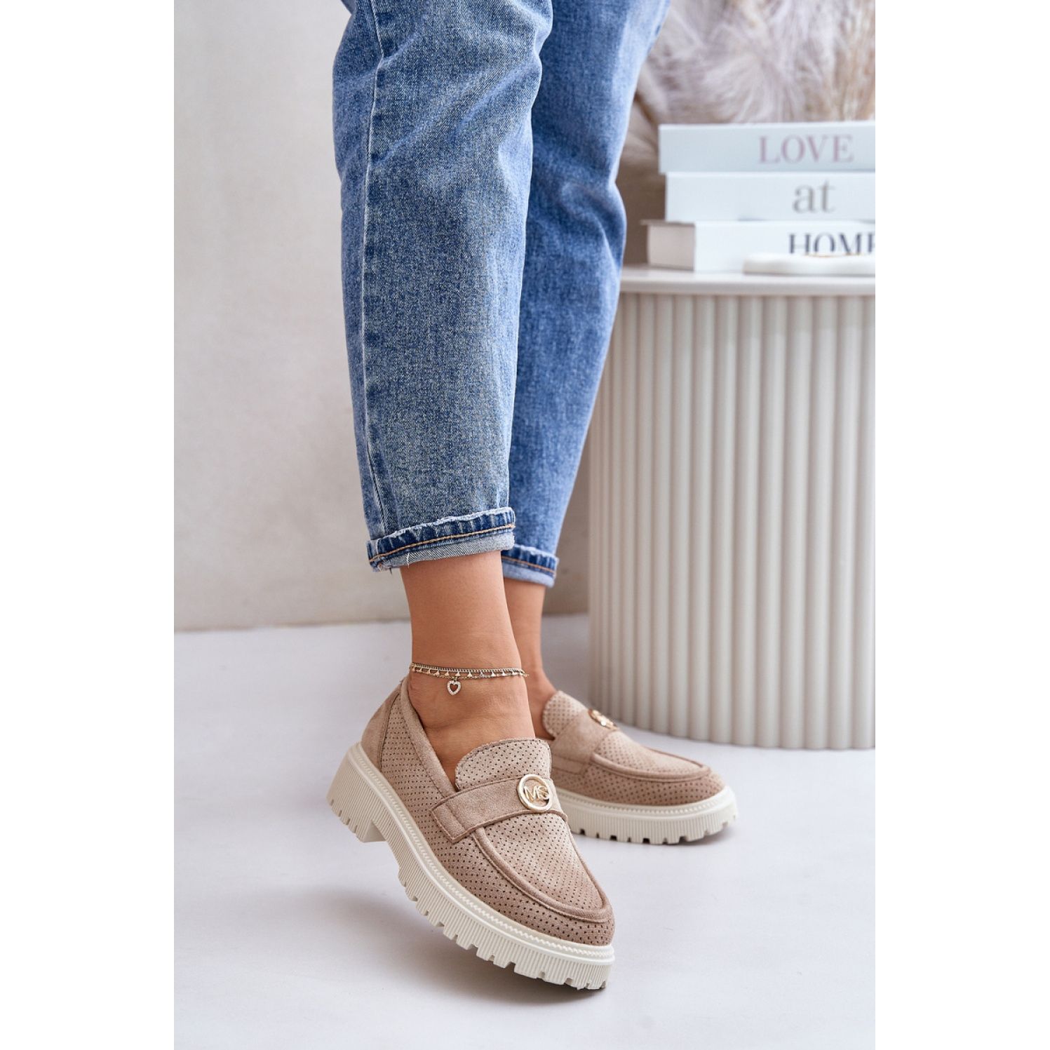 Details: Khaki women's platform moccasins beige
