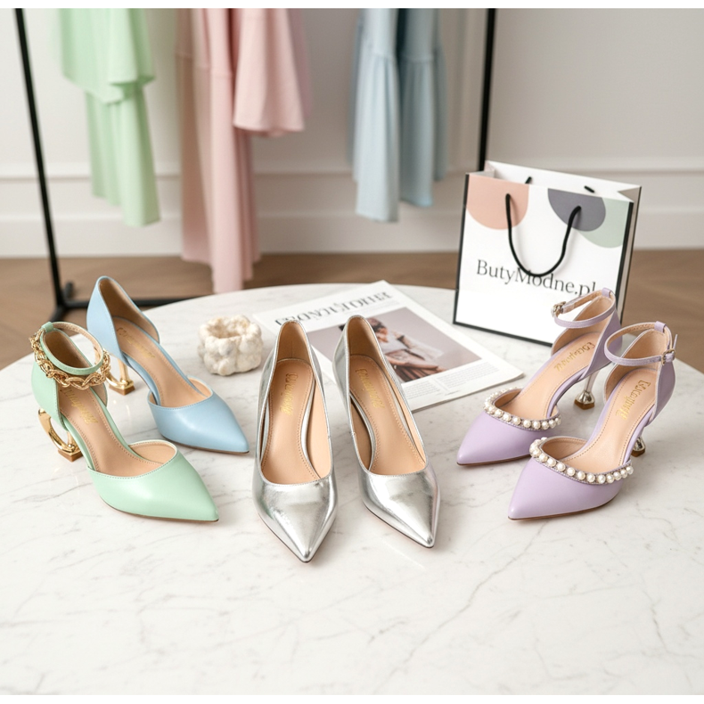 2026 trends in kitten heels go towards several aesthetic expressions. First of all, the pointed toe - classic and elegant, it optically lengthens the foot. Secondly, gold or silver metallic kitten heels - for those who want to shine. Thirdly, pastel colors - lilac, light blue, mint - in line with spring color trends.