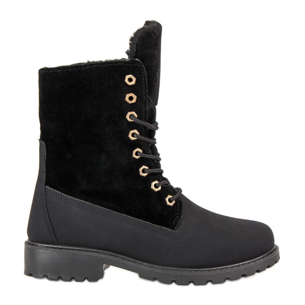 Black lace-up insulated workers are the perfect choice for women who want to combine style with comfort. These fashionable shoes, reaching above the ankle, are a great solution for colder days, thanks to their insulation, which provides warmth and comfort. Made of ecological suede and leather, workers are environmentally friendly, and their care is not difficult at all.