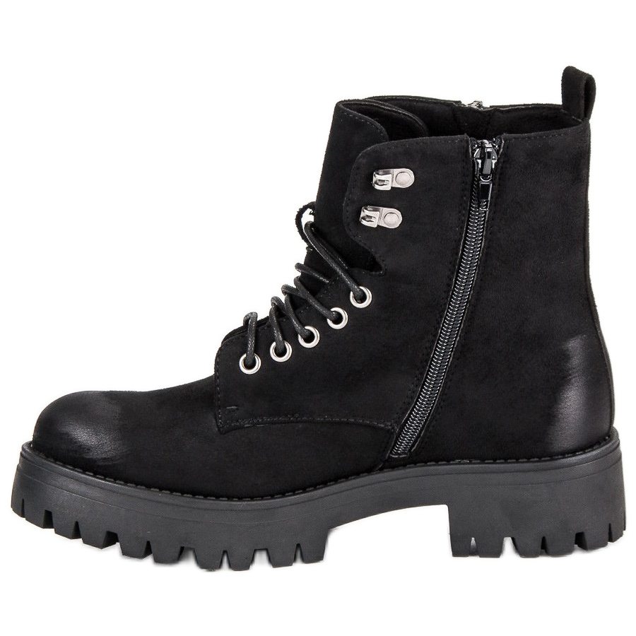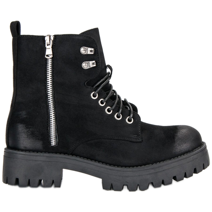 Black lace-up Corina workers are a great choice for women looking for stylish and comfortable footwear for autumn and winter. Made of high-quality ecological suede, they combine elegance with everyday functionality. These casual shoes are fastened with two decorative zippers and additional lacing, which ensures not only a fashionable look, but also a comfortable fit for every foot.