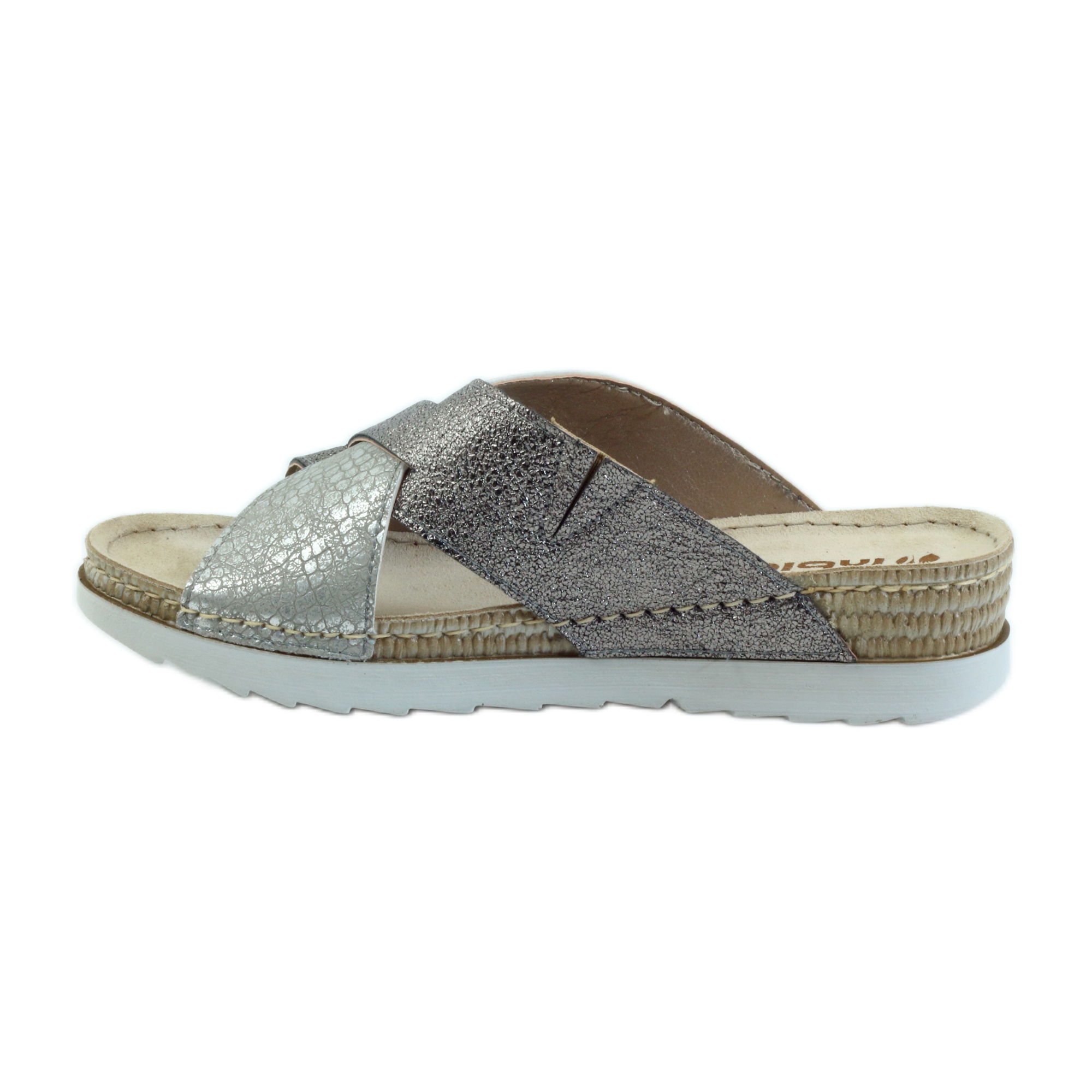 The KOMFORT INBLU 010 flip-flops feature a fashionable, metallic finish and an original design that will perfectly complement any summer styling. The heel height is 3 cm, which makes them comfortable and does not burden the legs.