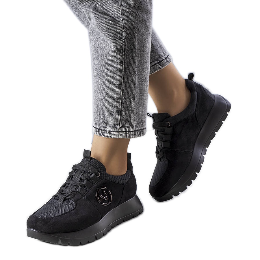 **BM Black Kristine Platform Sneakers** are the perfect footwear for women who value style and comfort every day. These fashionable sports shoes, set on a solid, flat sole, provide not only comfort but also stability thanks to the stabilizing tread. Their modern design with a round toe and a shaft reaching above the ankle makes them fit perfectly into current trends.