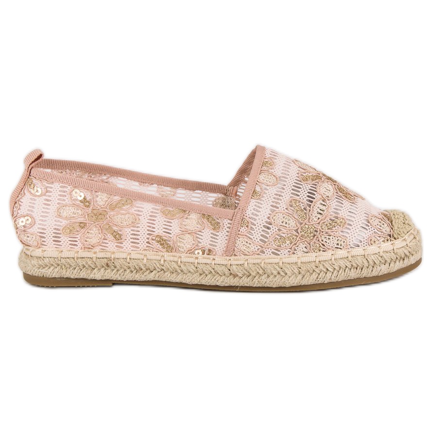 Perfect for everyday wear, espadrilles match casual styles, working well both for everyday outings and meetings with friends. Yellow and pink accents with a floral pattern and subtle elements of lace and glitter make these shoes not only practical but also fashionable.