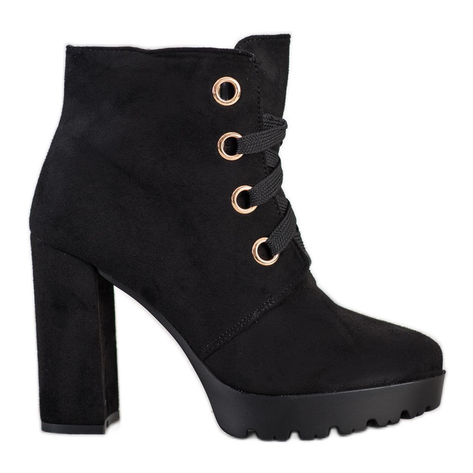 Here are the unique lace-up high-heel ankle boots from Juliet, which will perfectly fit into your wardrobe! These black ankle boots are a perfect combination of casual and elegant style, making them an ideal choice for many occasions - from everyday walks to evening parties.