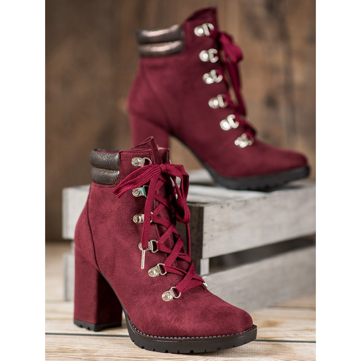 Sweet Shoes Lace-up Ankle Boots in deep red are the perfect choice for women who want to combine elegance with everyday style. Made of high-quality suede eco-leather, these ankle boots impress not only with their beautiful color, but also with their careful finish.