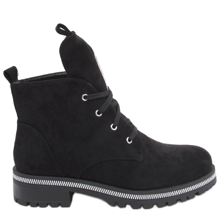 Introducing the Bing Black women's lace-up ankle boots in black - the perfect choice for the upcoming fall season! These incredibly stylish shoes, made of soft eco-suede, will provide you with not only comfort, but also a fashionable everyday look. This model is distinguished by an original shiny zircon application placed on the tongue, which gives it an elegant charm.