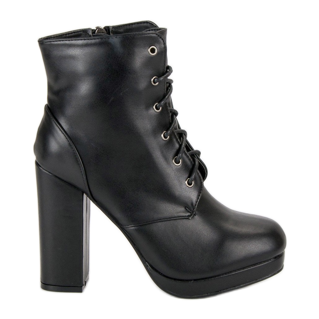 Thanks to the smooth synthetic sole, the ankle boots are durable and resistant to abrasion, and their round toe ensures comfort. Choose the black Small Swan lace-up ankle boots on the block heel and enjoy style and comfort every day!