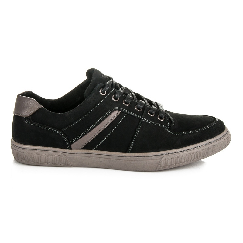 Classic, low-top Mazaro sneakers in a universal black color are the perfect combination of comfort and style. Made of natural leather - both the upper and the insole - ensure durability, aesthetic appearance and better breathability than models made of synthetic materials. The smooth, pattern-free design makes the shoes easy to match to various styles.
