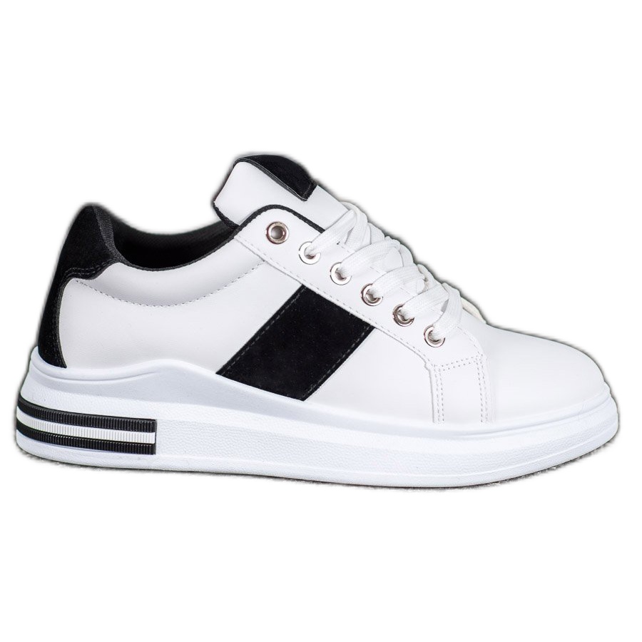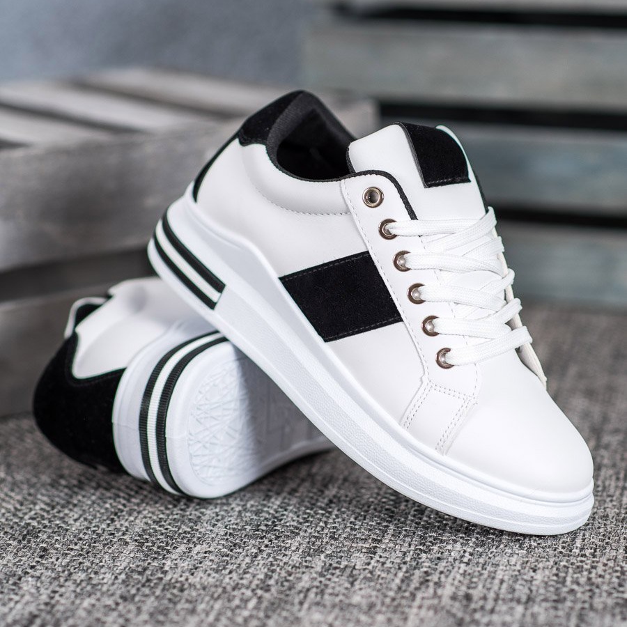 SHELOVET Lace-up Sports Shoes are a unique model that brings elegance to everyday styling. Made of high-quality materials, including imitation leather and imitation suede, these white shoes with black inserts combine comfort with a fashionable design.