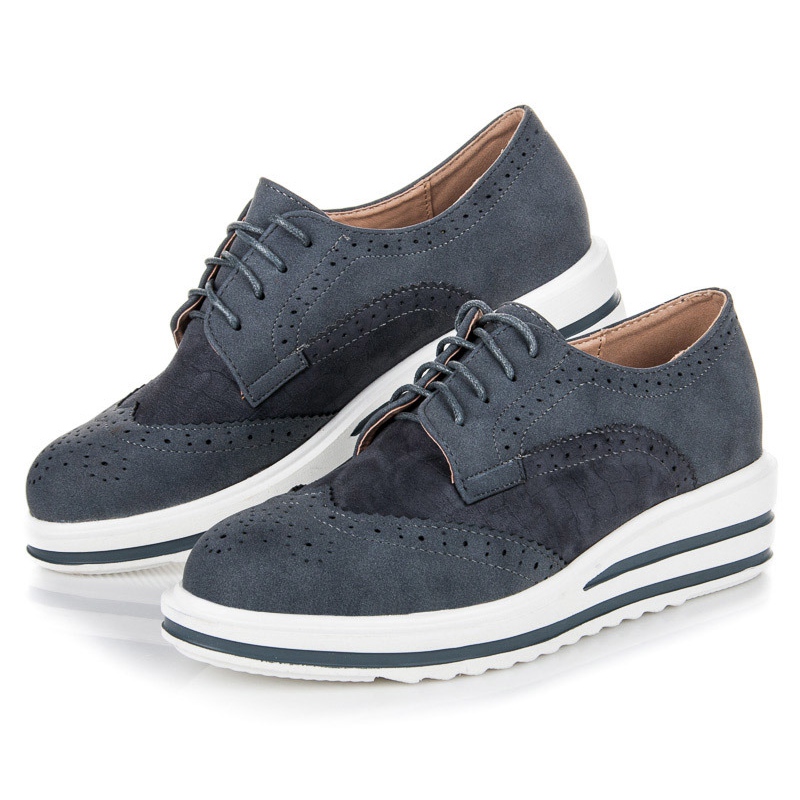 We present gray lace-up shoes from Vices, which are the perfect complement to any woman's wardrobe. Made of high-quality ecological suede leather, these shoes not only look elegant, but are also environmentally friendly. The gray color makes them a great choice for both everyday and more formal stylings.