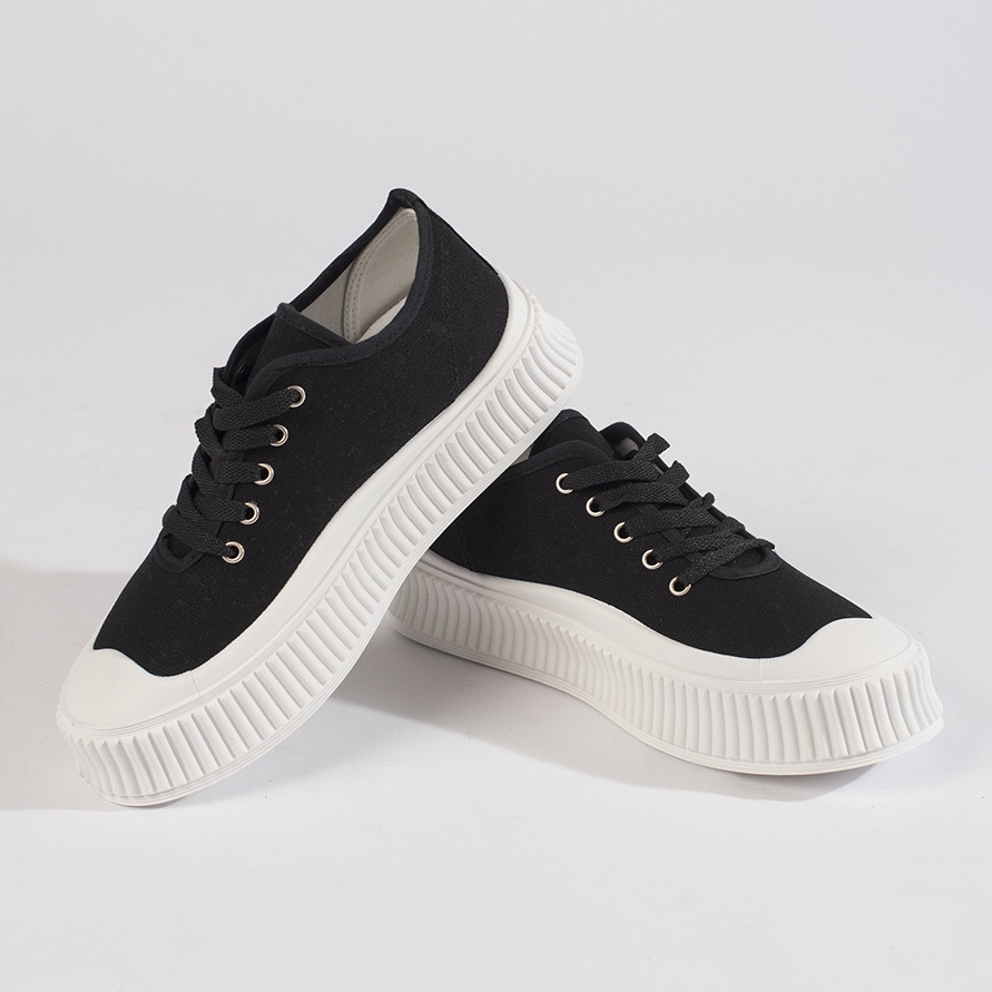 Discover comfort and style at any time with our lace -up women's sneakers on the platform. In an elegant black color, these fashionable sneakers will perfectly match any casual stylization. Made of 100% textile material, both outside and inside, ensure air circulation and convenience when wearing all day.