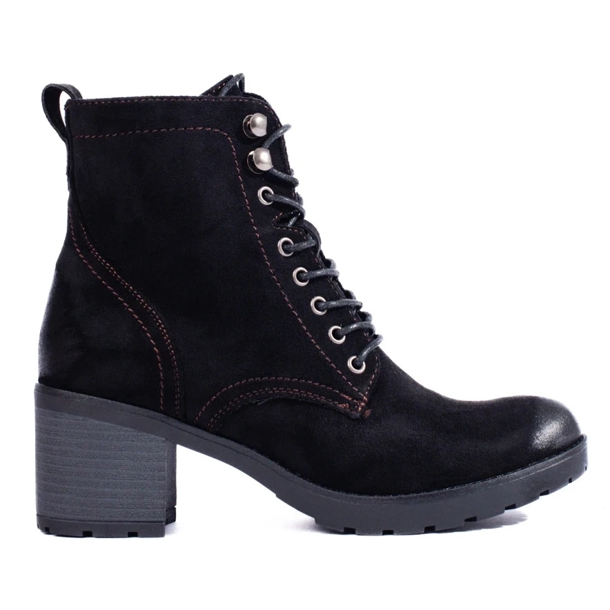 Elegant and comfortable women's boots from W. Potocki, made of ecological suede in a classic black color. The ankle model with a built -in, stiffened fool, insulated with a footwear blanket insert - the perfect choice for the autumn/winter season. The combination of lacing and zipper ensures easy assumption and precise fit.