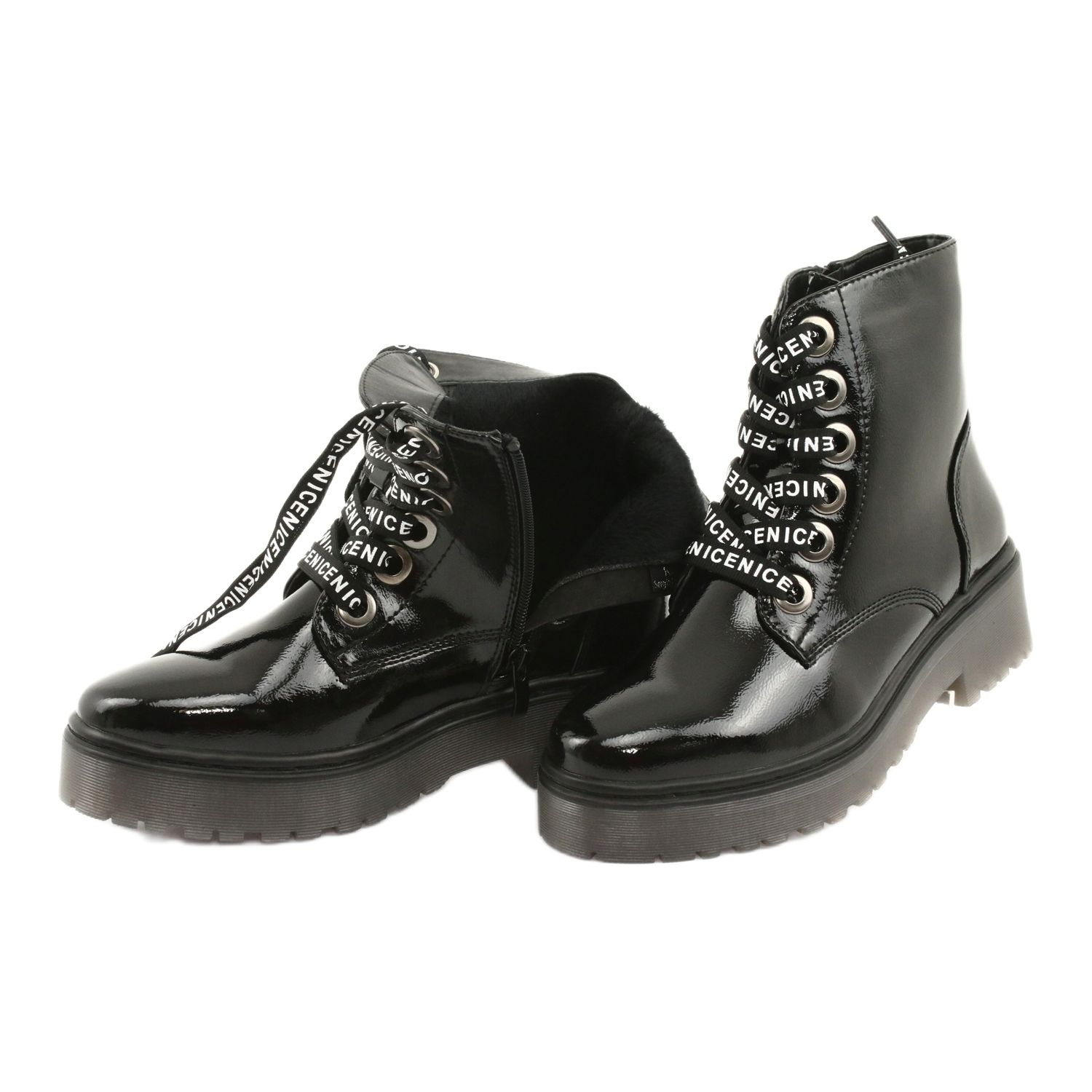 The Sergio Leone 726 patent leather boots are a perfect combination of fashionable design and functionality that will work well in any style. These insulated work boots, available in classic black, are an essential wardrobe element for every young woman who values comfort and a fashionable look. Made of high-quality patent leather, they provide not only an aesthetic appearance, but also comfort of wearing.