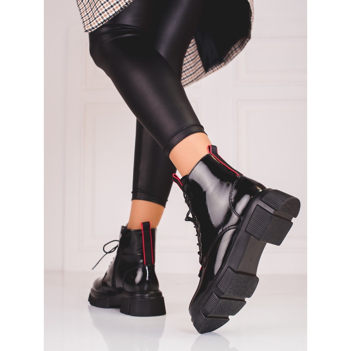 SHELOVET Laced Women's Shelovet light lacquered boots black