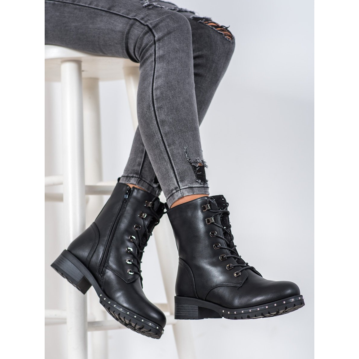 Discover the unique lace-up workers with crystals from J. Star, which perfectly combine classic style with a touch of elegance. These black ankle boots are a great addition to any woman's wardrobe, providing not only a fashionable look but also comfort in everyday use.