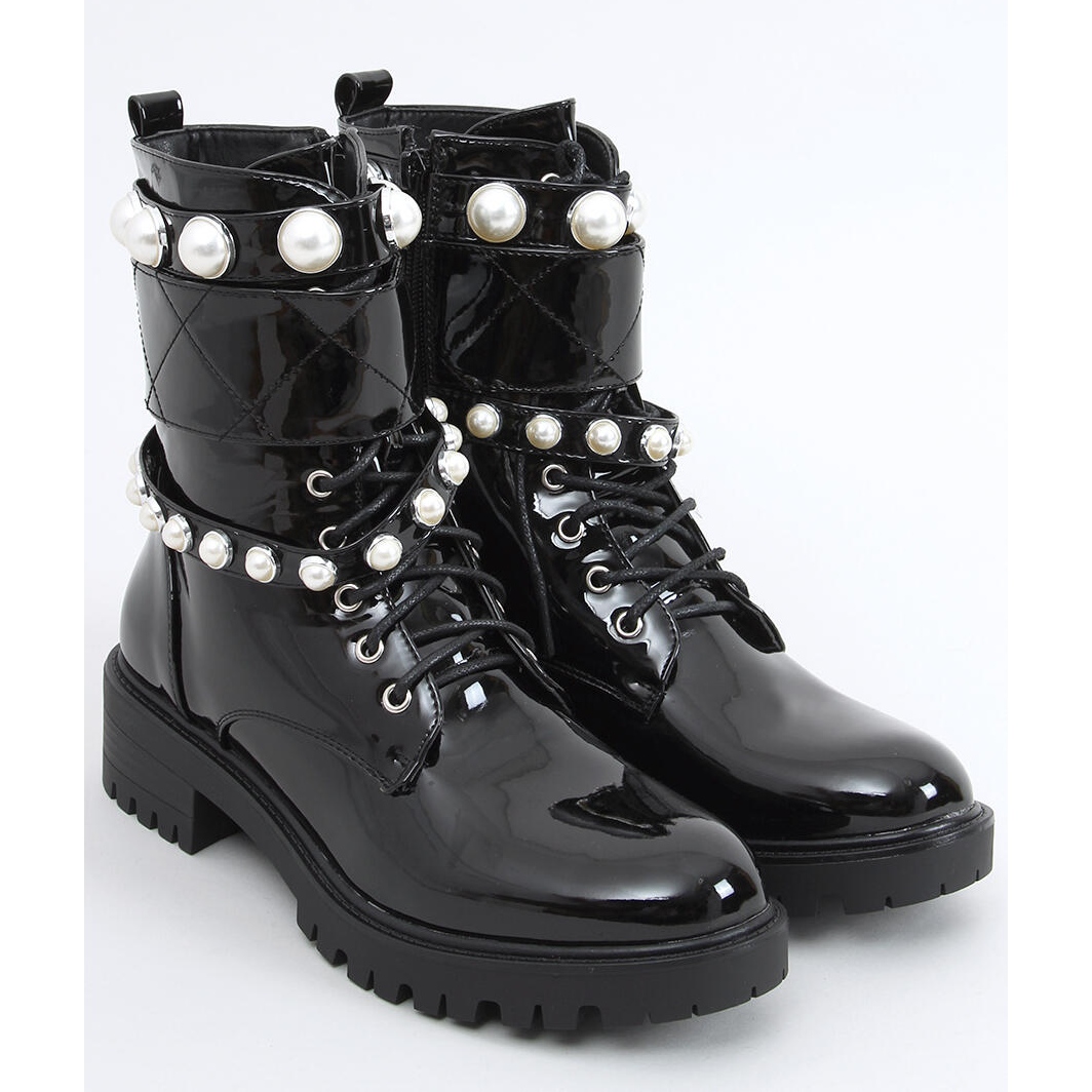 Order your black patent leather Beni Black pearl work boots and stand out from the crowd with fashionable yet comfortable footwear! Perfect for modern women who value style and comfort.
