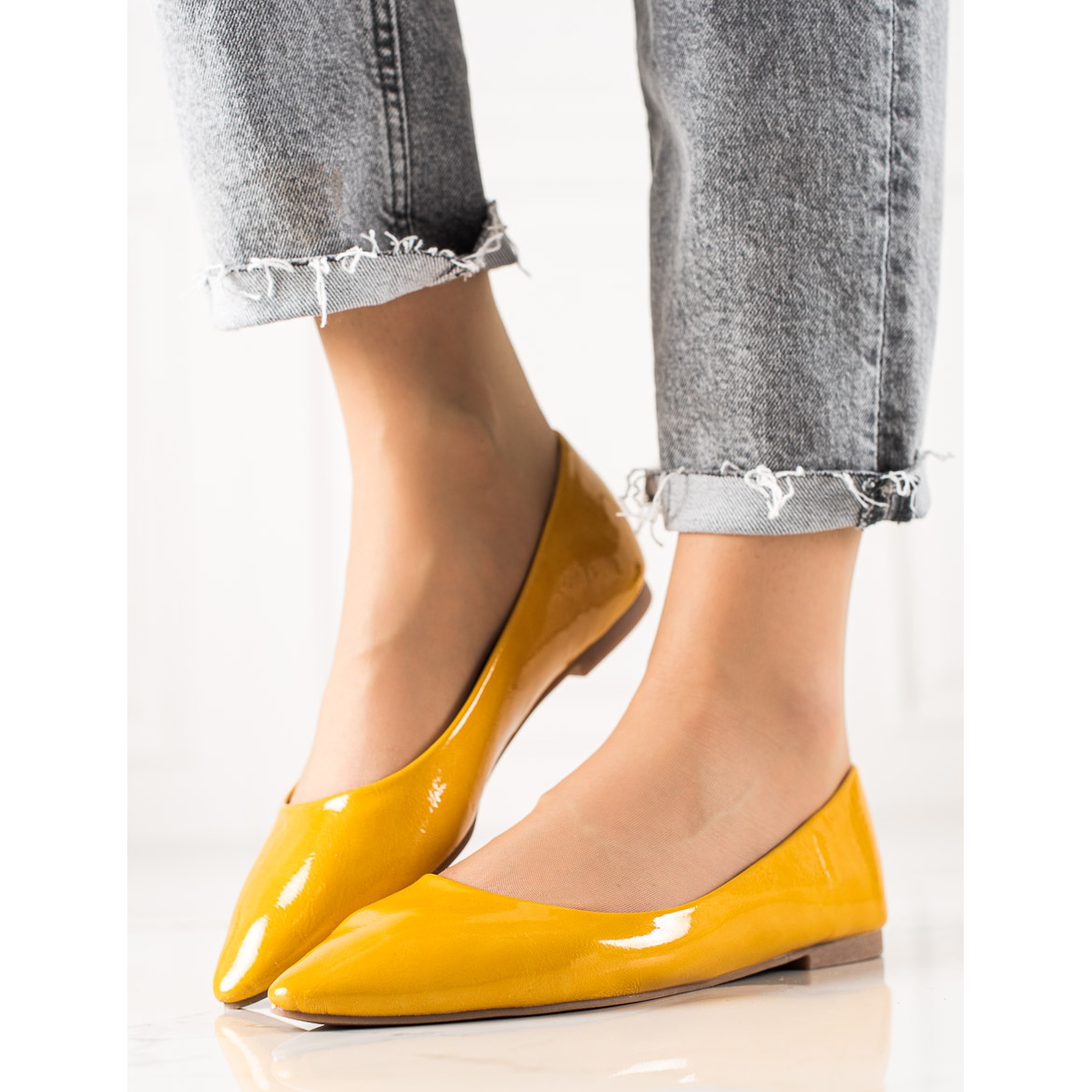 We present the Patent Leather Ballerinas in a beautiful, intense yellow color from the manufacturer Encor. These unique shoes are a perfect combination of elegance and comfort, which are perfect for both everyday and more formal occasions.