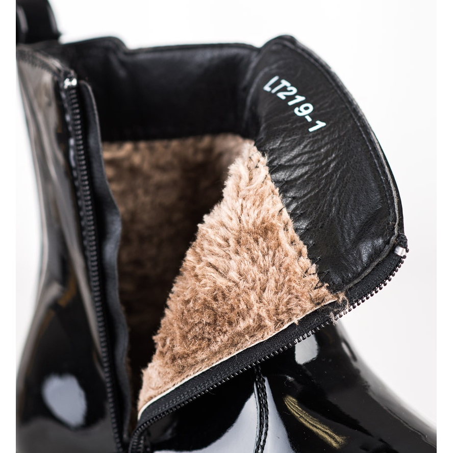 Discover the style and comfort offered by the Patent Leather Ankle Boots with Fur from SHELOVET. These elegant black ankle boots are a perfect combination of classic and modern, which will perfectly complement your everyday stylings for colder days. Made of high-quality patent leather, they provide not only an attractive appearance, but also durability.