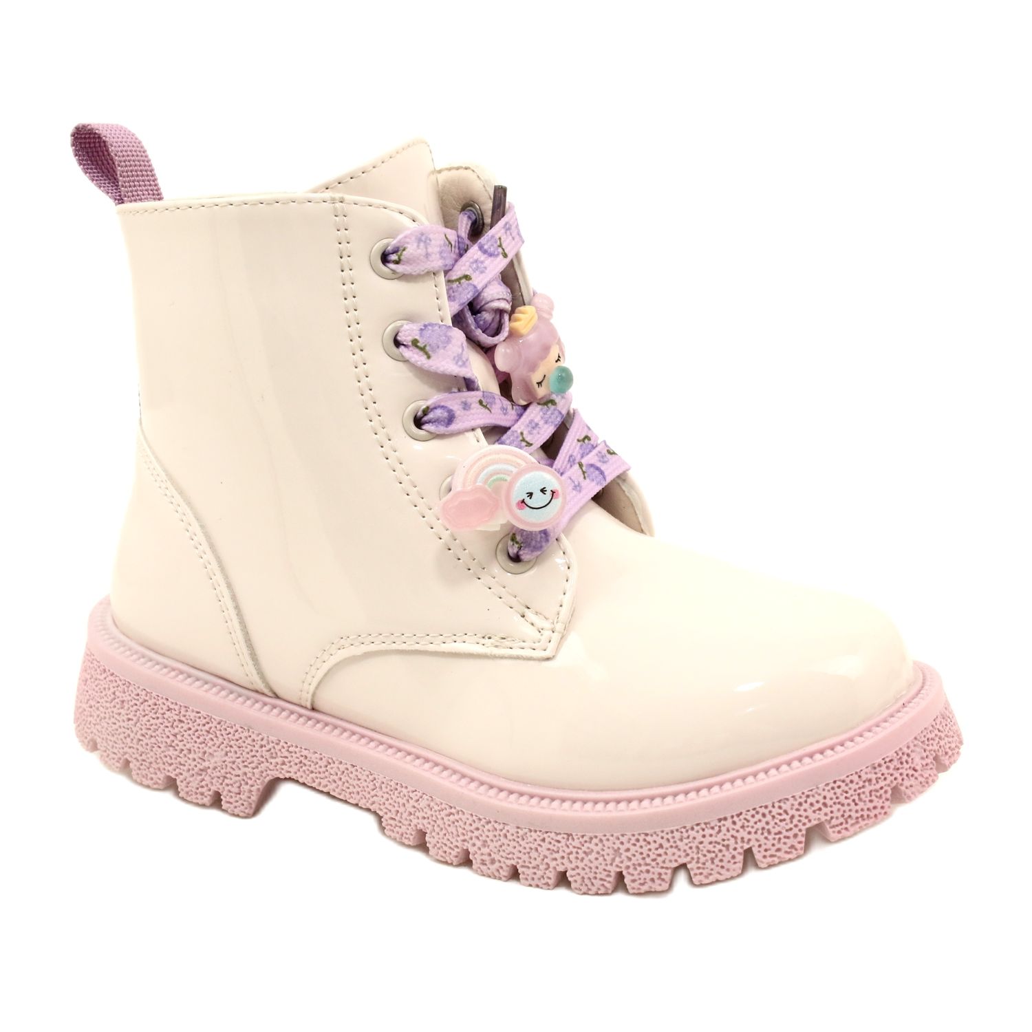 Miss varnished boots 23Dz23-6582-beige, insulated, girlish