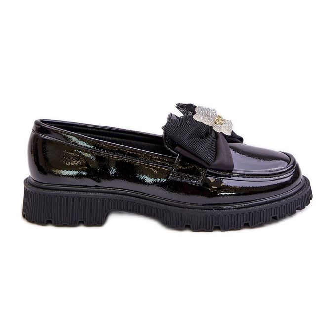Details: Vinceza Lacquered Eco Leather Girls' Moccasins With Bow, Black Avallesa
