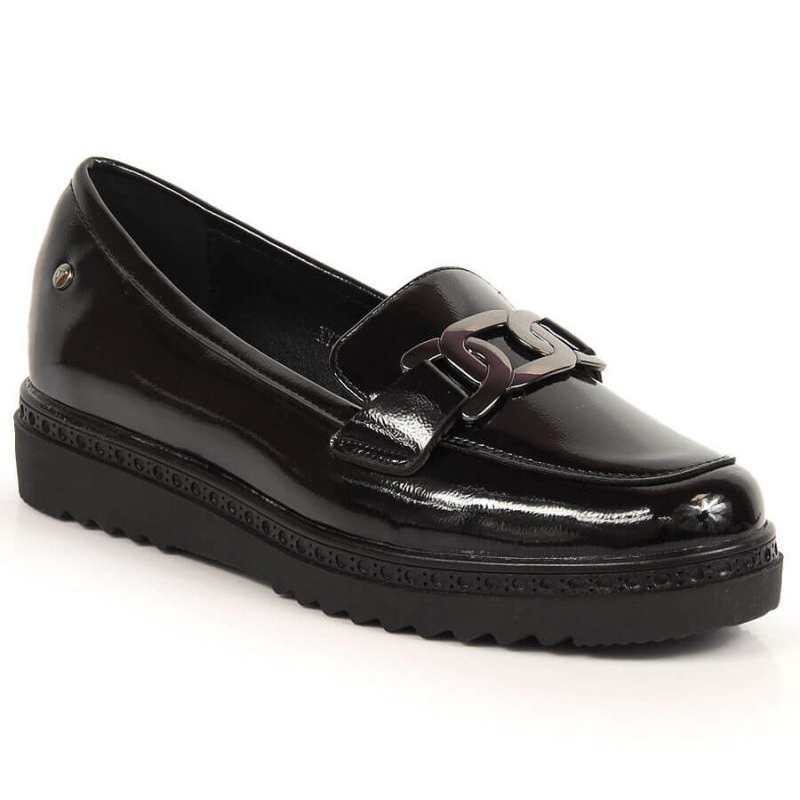 Moccasins are made of high-quality synthetic materials, which ensures both durability and a bit of shine thanks to the patent leather surface. The eco-leather from which they were made perfectly adapts to the foot, and the round toe adds classic charm to them. An additional advantage is the subtle detail in the form of a chain, which emphasizes their fashionable character.