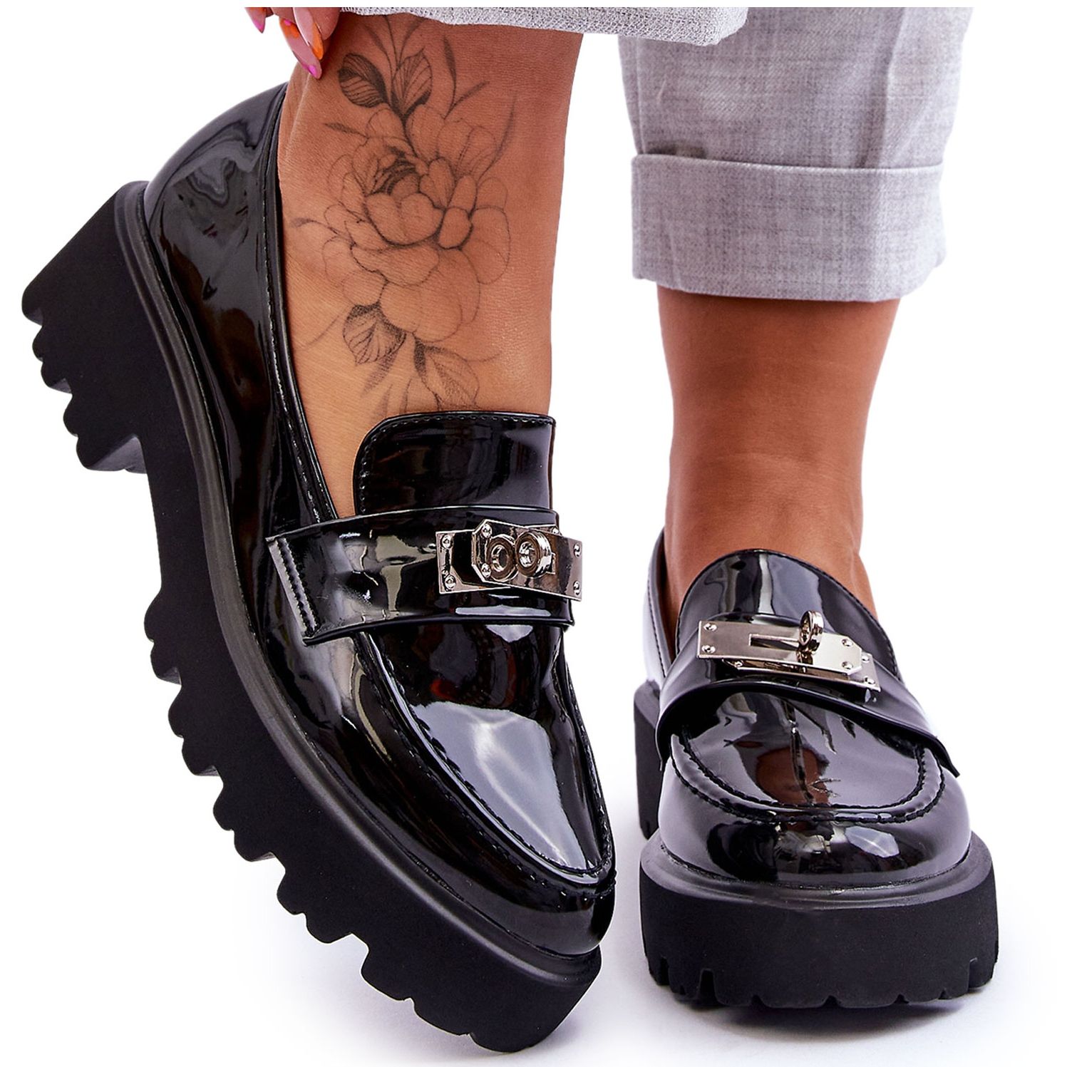 FJ1 FJ1 Lacquered Moccasins With Black Glory Platform Decoration
