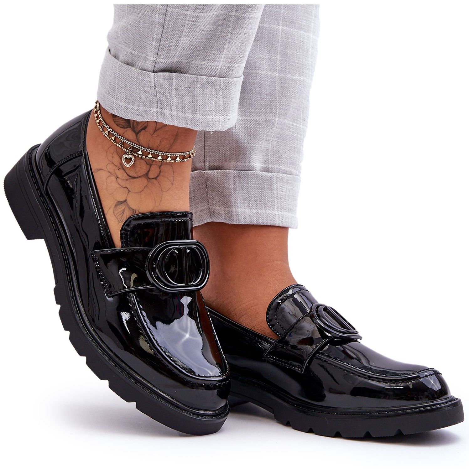 We present stylish and comfortable footwear for the modern woman - PG1 Patent Leather Moccasins on a Platform, Black Jarren. These elegant shoes combine the classic features of moccasins with modern design and are the perfect complement to a diverse wardrobe.