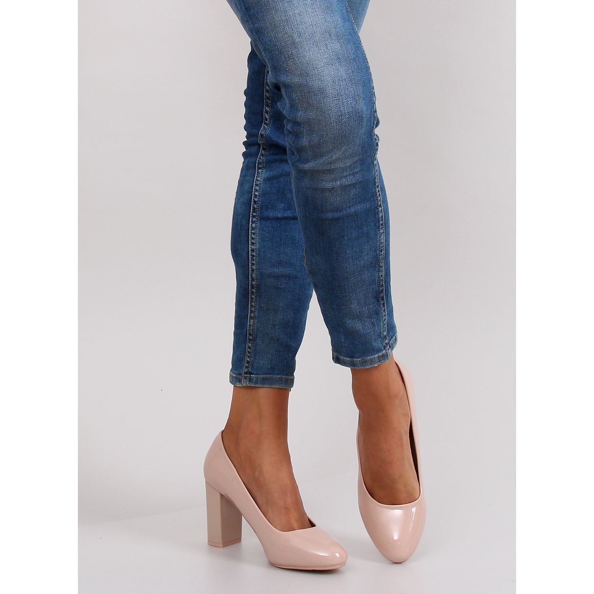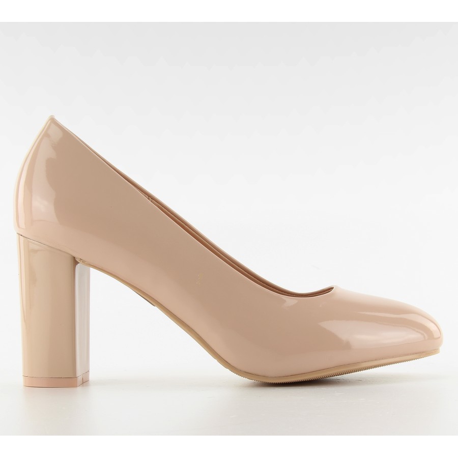 Inna marka Lacquered pumps wide heel m263p Beige multicolored pink