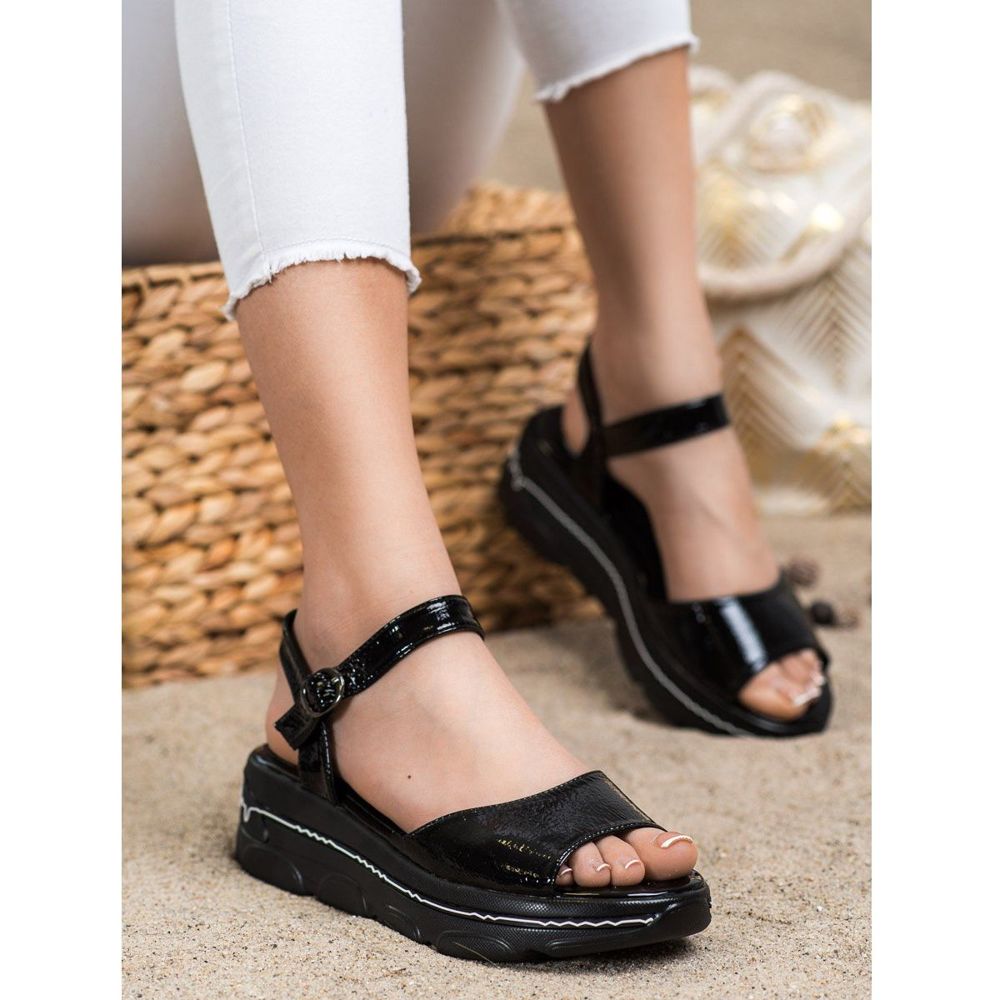 Filippo Patent Leather Platform Sandals are a choice for women who value style, comfort and high quality workmanship. Packed in the original manufacturer's box, they will be a great gift idea or a perfect complement to your own wardrobe. Thanks to their simple, black color, these sandals will match many different outfits, attracting attention and adding class to every look. Perfect for spring walks, summer parties or everyday outings. Bet on fashion and comfort with Filippo!