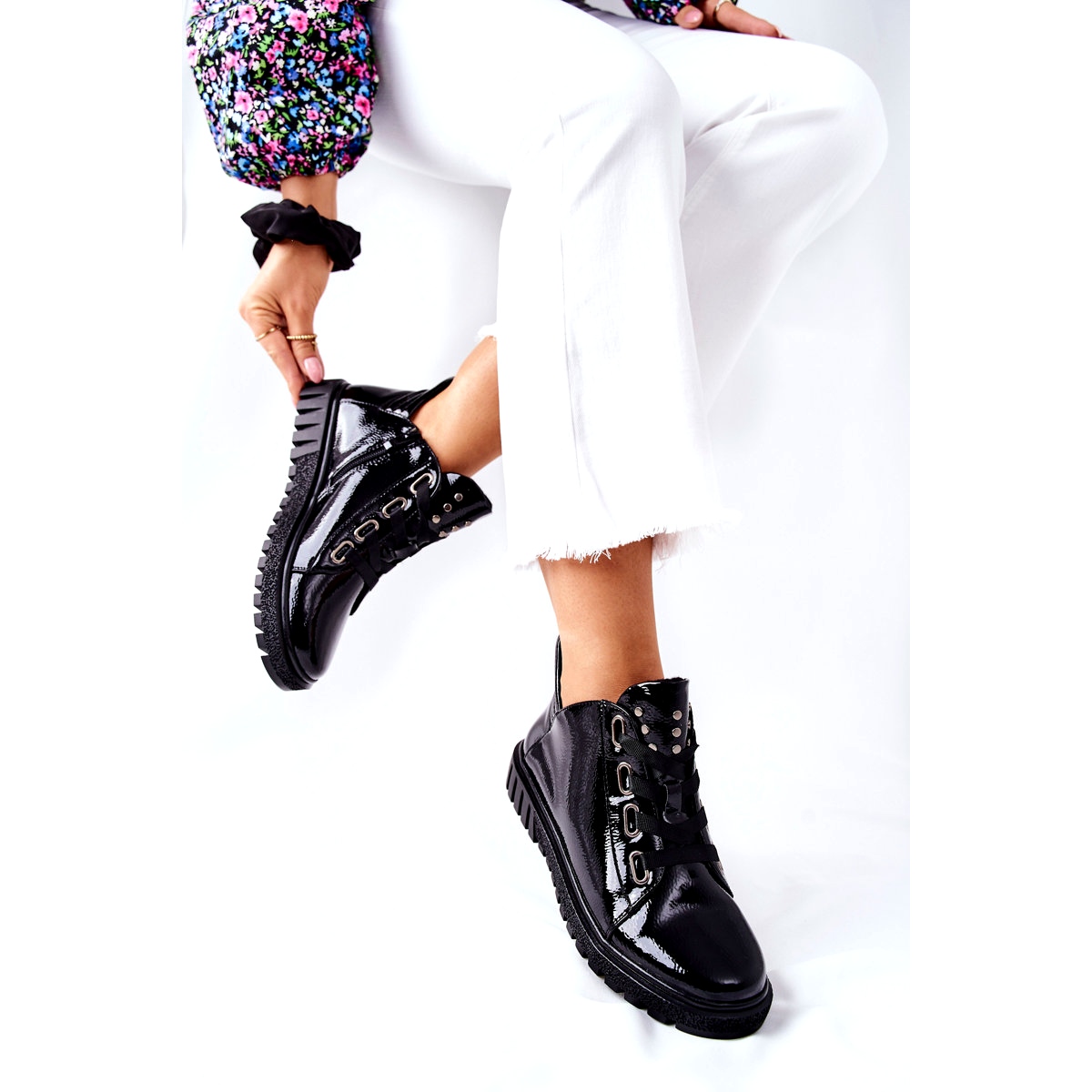 The inside of the shoes is insulated with a shoe blanket, making them an ideal choice for colder days. The applied lacing and zipper allow for easy putting on and taking off, and the decorative rhinestones on the tongue add a unique character to the whole.