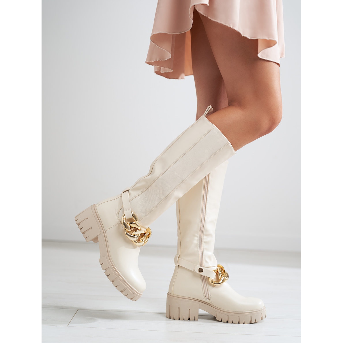 Discover the beige Shelovet women's boots with a thick sole, which combine timeless style and exceptional comfort. Made of fully ecological leather, these classic boots from the KeeShoes collection are perfect for everyday styling, adding a fashionable character to them.