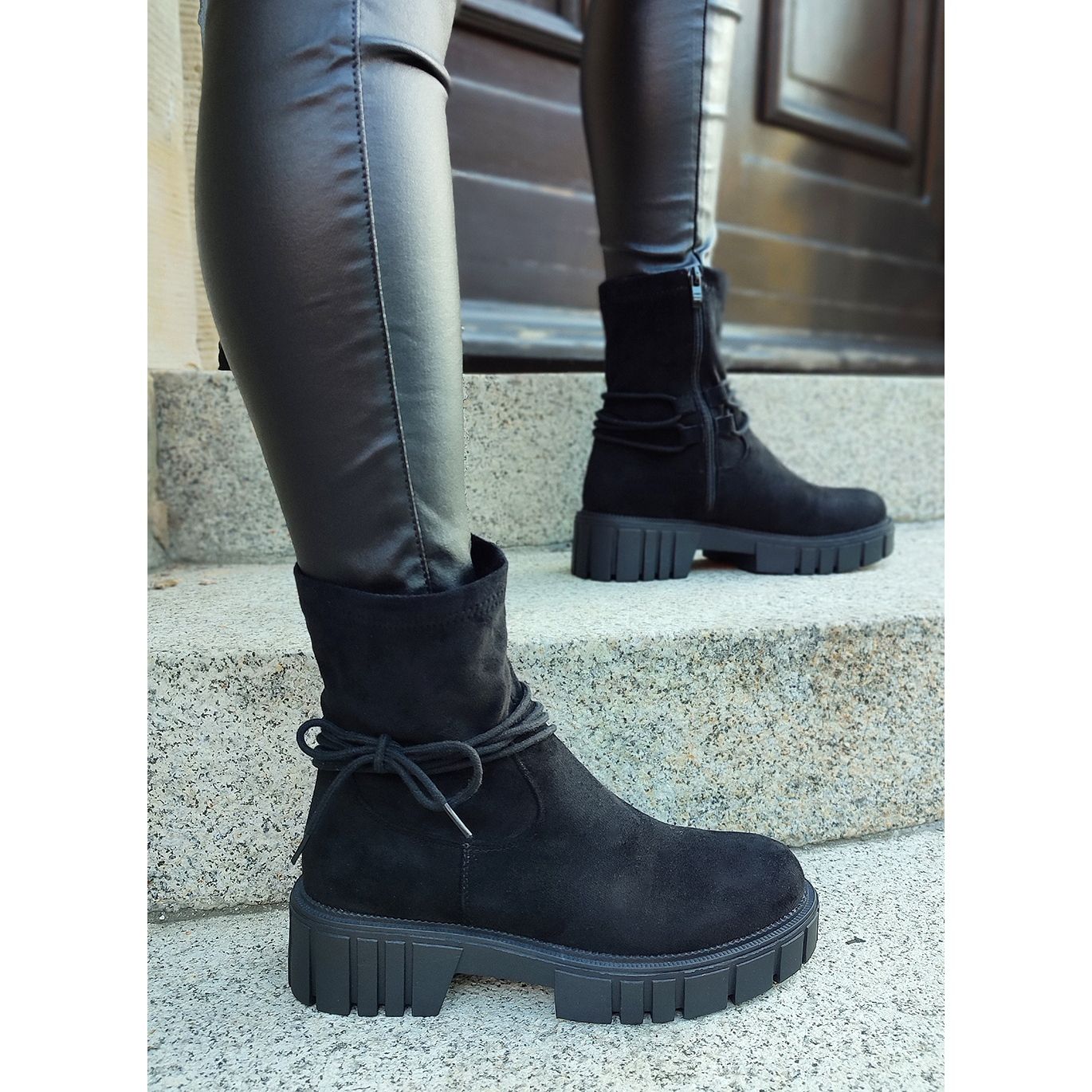 Black women's boots with an elastic upper - a classic with a hint of urban style. Made of high quality ecological leather in suede version, they combine an elegant look with daily comfort. The minimalist, smooth cut in a universal black color will work in many styles - from casual to more elegant.