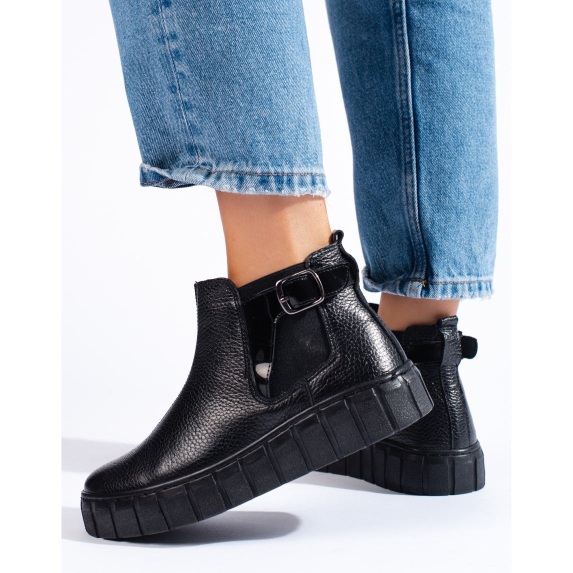 T.Sokolski T.Sokolski Ladies' black Chelsea boots on the Sokolski platform, made of natural leather