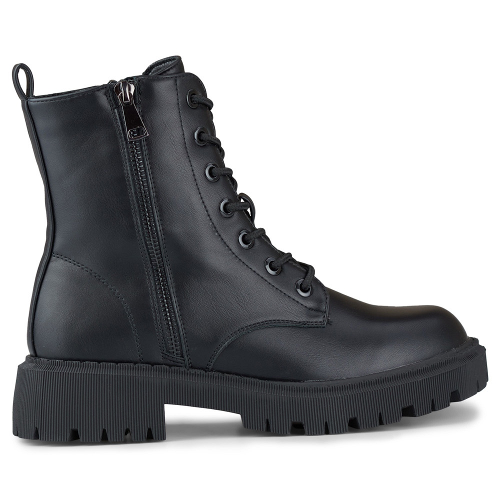 Inna marka Ladies' black eco-leather lace-up ankle boots