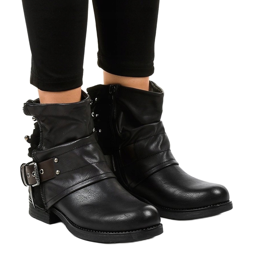 Inna marka Ladies' black flat ankle boots with M207 studs