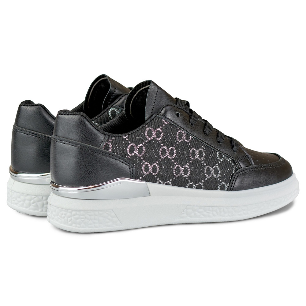 Black women's sneakers with a fashionable geometric pattern - comfort and style every day