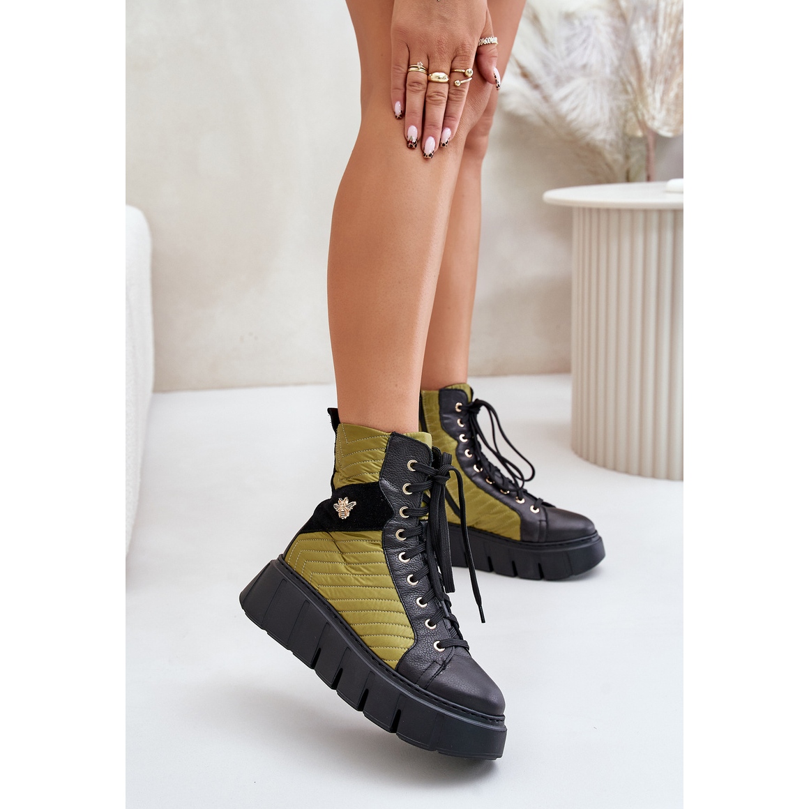 Set on a solid platform with a height of 4.5 cm, boots combine functionality with fashionable style. Thanks to the zipper fastening and lacing, you can count on a perfect fit, as well as the ease of putting on. The interior of shoes insulated with a footwear blanket makes them a great choice for cooler days, offering comfort even during longer wearing.