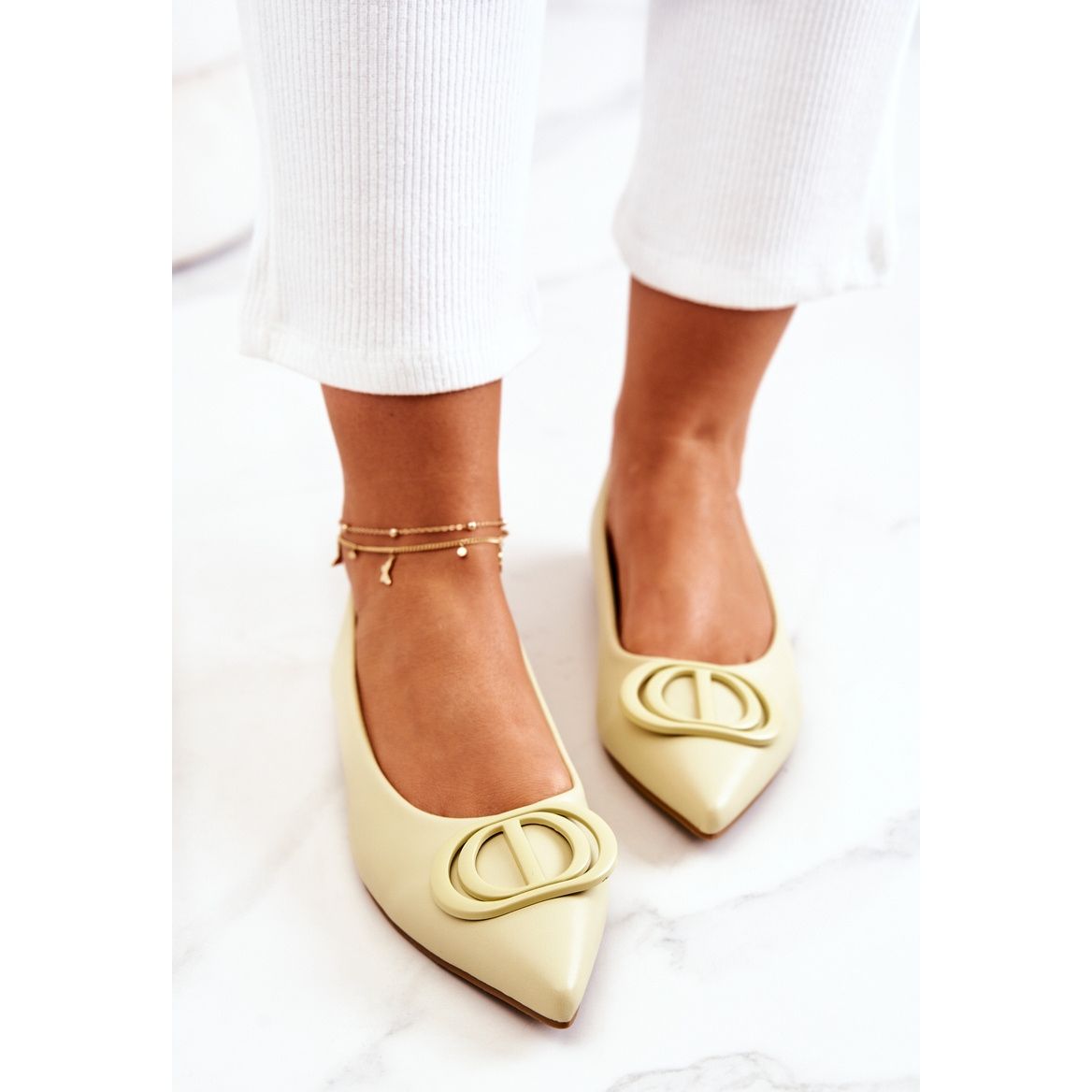 PS1 RACHELLE-Elegant Ballerinas in a spitz made of eco-leather (light green with a yellow accent)