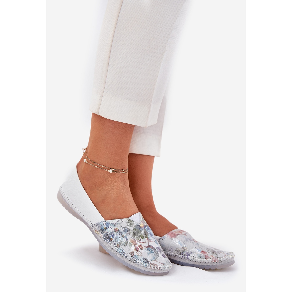 Ballerinas have rounded toes, which makes them not only aesthetic, but also comfortable, and the soft insert guarantees a pleasant feeling during use. In addition, a patterned front with a floral motif gives them a unique character, which attracts attention and distinguishes from the crowd.