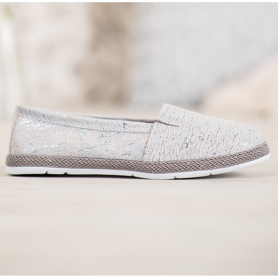 Discover elegance and comfort in every situation with the Goodin ballerinas in gray with a holo effect. Made of high-quality natural leather, these women's shoes combine casual style with a fashionable finish. Their unique design, enriched with a braided gray stripe along the sole, attracts attention and adds lightness to any styling.