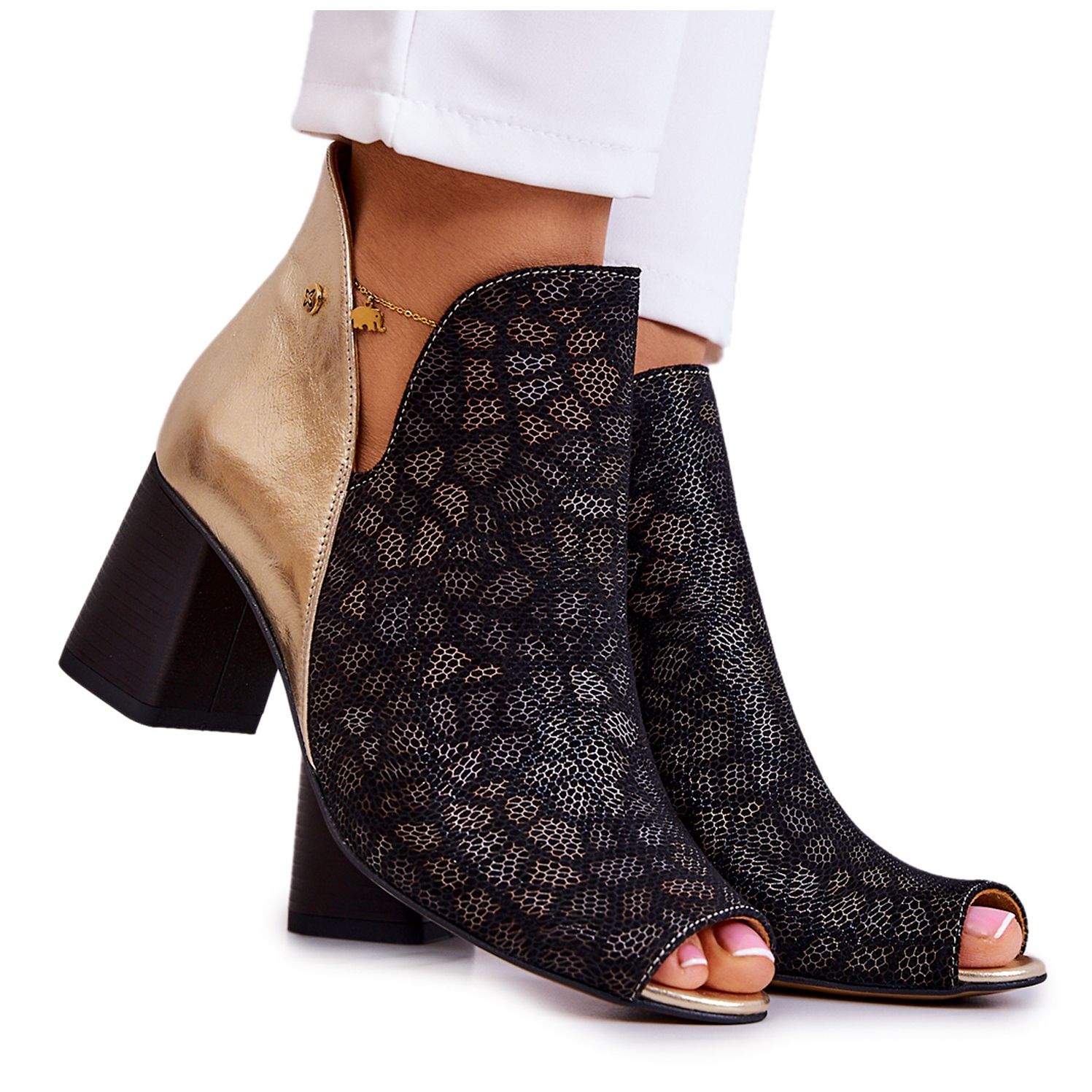 Details: Leather boots on a post Maciejka 05507-01 Black and Gold golden