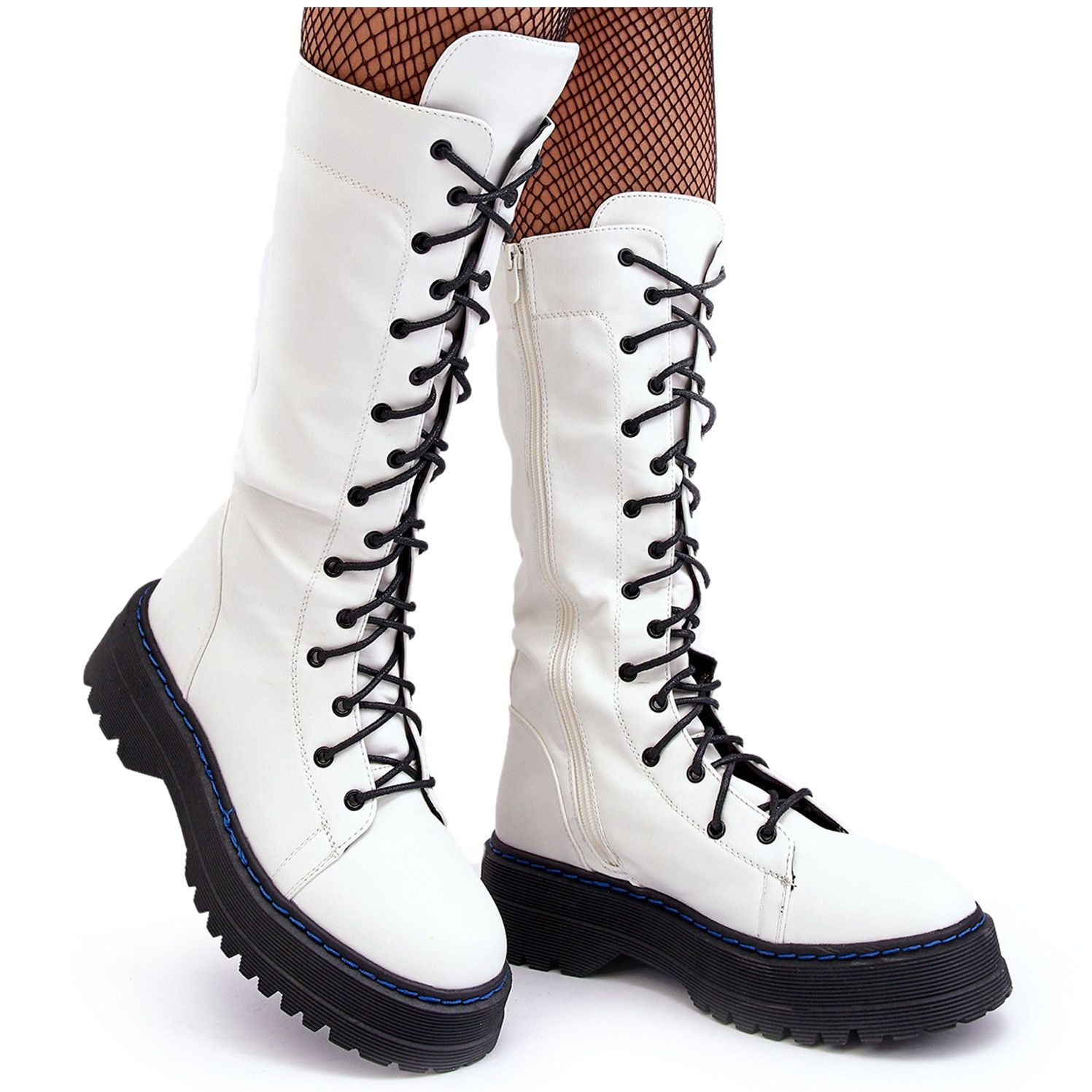 Made of high-quality eco-leather, these white boots provide not only the desired comfort, but also care for the environment. Designed to reach mid-calf, they are perfect for both casual and more rock styles. Lacing combined with a functional zipper makes it easier to adjust the shoe to the foot and calf, ensuring stability and easy putting on and taking off.