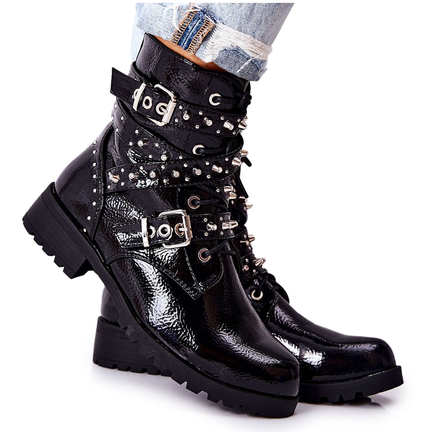 The upper of the boots is decorated with spectacular straps with buckles and sequins, which gives them a unique character. Additionally, the inside of the shoe is insulated with a pleasant to the touch shoe blanket, which ensures comfort of wearing even on colder days.