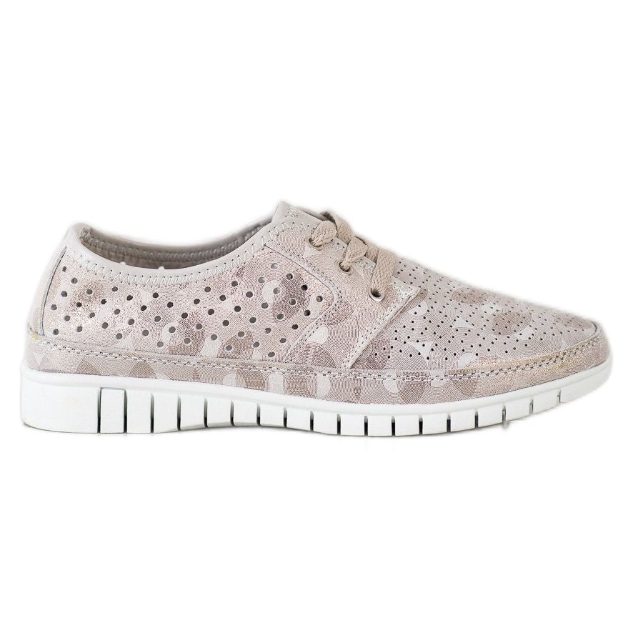 We present unique platform shoes from the Kylie brand, which combine elegance and comfort. These women's shoes in gray are made of high-quality natural leather, the whole is complemented by an extraordinary openwork pattern, which adds lightness and freshness to them.