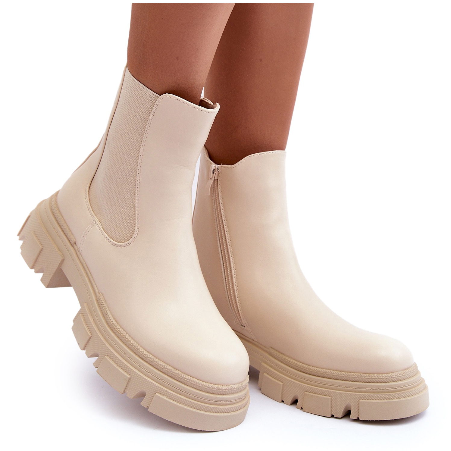 Details: Leather Chelsea boots with flat heels and platform, light beige Solita