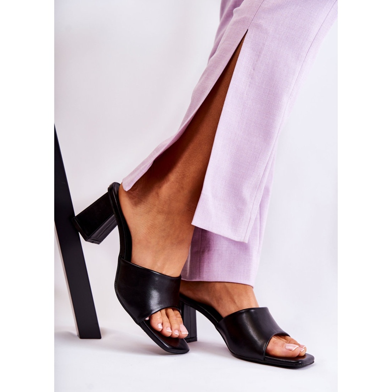 PG1 PG1 Leather Classic Slippers On Heel Black Talena